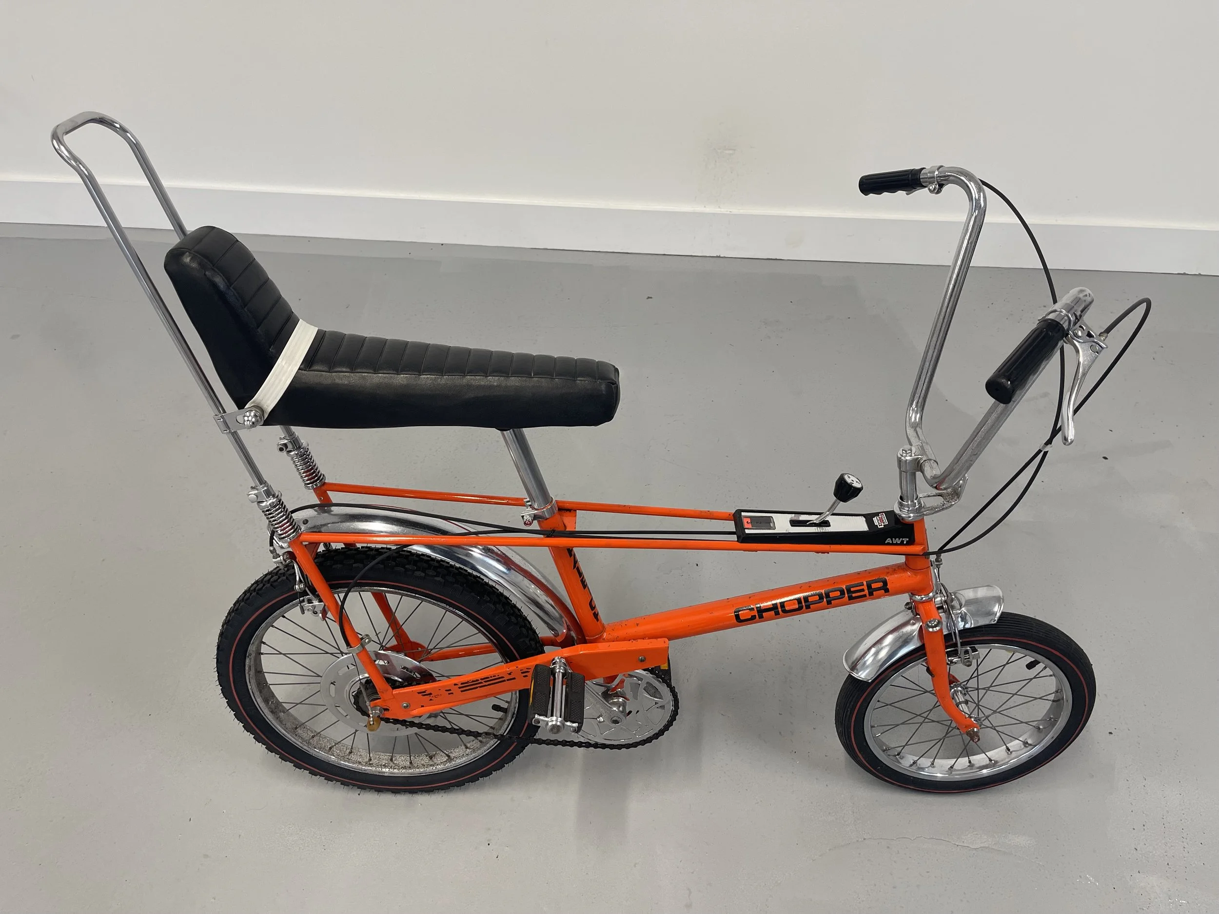 The Raleigh Chopper is a wheelie bike made for children or young adults and marketed from the 1960s to 2005 by the Raleigh Company of Nottingham.its unique design became a cultural icon, featured in many tv shows and films, including The Goonies. The MK1 model was produced from 1968 to 1972 and is by far the most desirable.