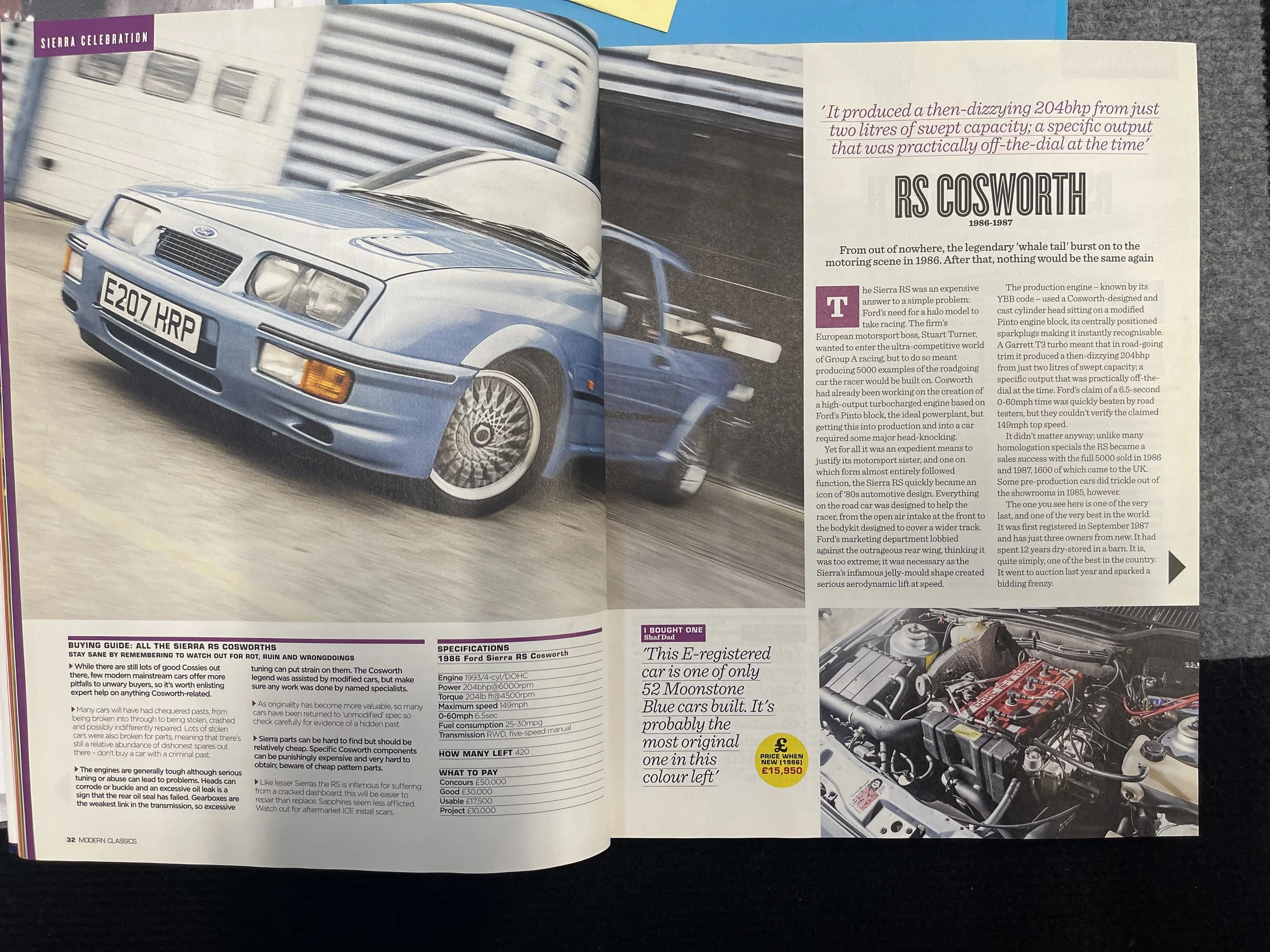 Finished in the stunning shade of Moonstone Blue, there's not any other colour which stands out as much as this with its deep wet gloss look. Looking around the car, it is quite clear the Sierra RS Cosworth is in as near-perfect condition as you could get, with no dings or dents. The panels align as expected, and the paintwork has no blemishes.